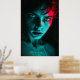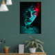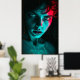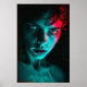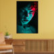 Olhem para um mundo onde a emoção fratura a superfície. Este retrato elétrico queima em ciano e creme - meio anjo, meio reluzente. Perfeito para amantes da moody cyber-art, rebelião digital, e muros que sussurram histórias em sombras e luz. Ela rachou, mas brilhou mais nos intervalos.