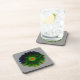 Esta incrível porta copos de cortiça apresenta uma fotografia de uma flor de marigold que foi manipulada para criar uma bela flor de neon com um centro vermelho e verde brilhante cercado por pétalas com tons sutis de amarelo, verde e azul. A flor se senta sobre uma cinza ardente para enfatizar o centro brilhante e criar uma atmosfera sangrenta.