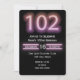 Números de néon cor-de-rosa brilhantes sobre fundo preto para uma 102ª festa de aniversário Todo texto é editável. A cor preta do plano de fundo pode ser alterada.