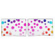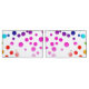 Padrão de bolinhas neon arco-íris num fundo branco. A cor de fundo pode ser alterada.