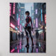Neon Thorns - Cyberpunk Rosa Assassin Poster