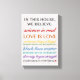 Esta tela é a decoração de casa perfeita e diz tudo: "Nesta Casa, Acreditamos: ciência é amor real é amor não é ser humano é direitos humanos são direitos humanos vidas negras matéria feminismo é para todo mundo diversidade força compaixão é tudo"