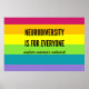 A neurodiversidade é para todos - todos os textos de bonés com "rede feminina autista" impressa por baixo. O fundo é listras arco-íris.