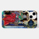 Pintura colorida, vibrante e contemporânea em cores dourada, azul, vermelha, verde, castanha. Um misterioso feiticeiro hipnótico com fantasias elegantes de veludo vermelho segurando uma esfera mágica sentada num trono gótico com gargantas e coruja. Ambiente é surreal, fantástico, alquímico onde você vê um testículo é bebendo de uma xícara, um monge templar voando sobre um sapo, bolhas transparentes, paisagens de fantasia com fogo infernal, céu azul cósmico com estrelas, montanhas do céu, árvores .Egg Tempera em um painel de madeira com folha de ouro. 1989, Miniatura Feita com técnicas pictoriais de 1300 por Alessandro Lumini (c) É também uma bela design de fantasia para Natal, Férias, Aniversário, Dia da Véspera de Ano Novo, Mardi Gras e Saudações de Carnaval.