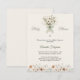 An elegant soft ivory background, decorated with a floral bouquet with bow in muted green and ivory. Personalize and add a name and party details. Text: Baby in Bloom.