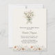 An elegant soft ivory background, decorated with a floral bouquet with bow in muted green and ivory. Personalize and add a name and party details.