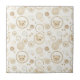 Ceramic Tile - Cute teddy bear faces in soft beige tones arranged in a playful circle pattern with subtle dots and abstract shapes. Clean, calming neutral aesthetic with a modern minimalist feel. Ideal for babies, toddlers, new parents, and neutral nursery style lovers.