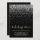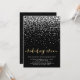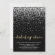 Convite moderno para festas de férias com neve caindo, roteiro cômico, estrelas e flocos de neve. Itens correspondentes e outras cores estão disponíveis.