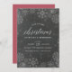 Brrr! Convites chiques para festas de Natal e encontros de férias apresentam uma fronteira de flocos brancos de neve com os detalhes da festa de Natal em um fundo de quadro. Personalize com o seu tipo de evento; mostrado com "cocktails e alegria".
