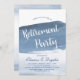 Crie uma impressão única nos seus futuros convidados com este convite de festa de aposentadoria. Ele apresenta um fundo manchado de azul em estilo aquarela. Seus detalhes ficam no centro em uma cor azul-marinho escuro que combina com o esquema de aquarela.