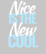 Espalhe o mais gentil com este belo slogan que a t-shirt diz Nice é o Novo legal em texto branco e azul. Design por www.mylittleeden.com