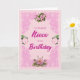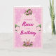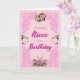 Um cartão de aniversário bonito para uma sobrinha. Uma traria elegante em conjuntos cor-de-rosa das quatro rosas cor-de-rosa. O fundo é um padrão rosa pálido de flores. Um cartão adorável para enviar para uma sobrinha no seu aniversário.