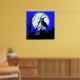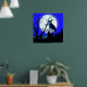This poster features a night time theme with an owl perching on a branch with silhouettes of trees and a big moon in the background.