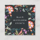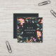 Cartões de visitas florais elegantes em forma quadrada única apresentam um padrão de fundo de flores coloridas brilhantemente e verde com seu nome ou nome de empresa e título exibido em branco em um quadrado preto-e-branco. Adicione as informações de contato do cheio ao lado inverso. Perfeito para planejadores de casamento, planejadores de eventos e outros profissionais de ocasião especial.