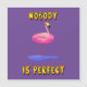 Traga humor e charme para o seu espaço com este design de "Ninguém é Perfeito" esquisito, com um flamingo relaxado flutuando em um anel de natação rosa. Colocado contra um fundo roxo arrojado com letras amarelas divertidas no estilo 3D, esta design divertida e atraente é perfeita para amantes flamingos, vibrações de verão, e qualquer um que abraça a imperfeição com um sorriso. Ideal para presentes, decoração doméstica e acessórios!