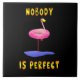 Traga humor e charme para o seu espaço com este design de "Ninguém é Perfeito" esquisito, com um flamingo relaxado flutuando em um anel de natação rosa. Colocado contra um fundo roxo arrojado com letras amarelas divertidas no estilo 3D, esta design divertida e atraente é perfeita para amantes flamingos, vibrações de verão, e qualquer um que abraça a imperfeição com um sorriso. Ideal para presentes, decoração doméstica e acessórios!