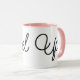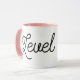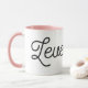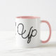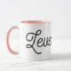 Nivele acima do roteiro preto de Writtenin em uma caneca branca e cor-de-rosa