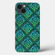 Um caso do iPhone 6 (extremo) de um diamante celta azul-esverdeado do nó repetiu o design do azulejo contra um fundo preto.