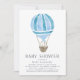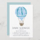Celebre o seu filho a caminho com este doce e simples convite para chás de fraldas em azul mole e aqua aqua. Design apresenta uma ilustração do balão de ar quente em azul, turquesa e bronzeado, com os detalhes de seu evento embaixo da cinza azul enfumaçado.