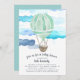 Celebre seu doce bebê no caminho com nosso convite de chá de fraldas neutro em hortas-aquáticas. Design apresenta uma ilustração do balão de ar quente na menta e no aqua, voando através de nuvens azuis fluffy, com os detalhes do evento abaixo na letra da cinza azul enfumaçado.