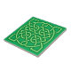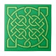 Azulejo cerâmico em padrão celta tradicional baseado no nó de um marinheiro, feito de duas cordas interligadas que simbolizam a mistura de vidas individuais em um só. O padrão do verde limão é esboçado em verde escura esmeralda sobre um fundo verde esmeralda.