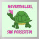 Tartaruga de cartoon bonita vestindo um chapéu cor-de-rosa, com a legenda "No entanto, ela persistiu!". Inspirada na marcha feminina de 2017 e referência à Senadora Elizabeth Warren.