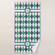 Argyle vai de 8 bits com este esquema de cores clássico com uma luz - ponto dos azuis marinhos, do verde de Kelly, e o branco do contraste das cinzas que cria um teste padrão perfeito para o campo de golfe. Personalize o monograma na mão e na toalha de banho para uma decoração original para seu banheiro. Estes artigos podem ser comprados como um grupo de harmonização ou como partes individuais.
