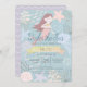 Este belo convite de aniversário apresenta um fundo verde-claro-marinho com uma sereia, estrelas-do-mar, água-viva, concha, coral com uma escola de peixes. O verso apresenta um fundo roxo de lavanda leve com padrões de onda. Perfeito para debaixo das festas de aniversário do mar! Personalize-o para as suas necessidades. Você pode encontrar produtos correspondentes na minha loja.