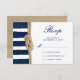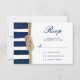 O cartão RSVP perfeito para um casamento ou evento temático náutico. Este produto apresenta um fundo listrado de cor azul-marinho com uma corda amarrada num nó náutico. A combinação perfeita do estilo náutico eterno e sotaques modernos rústicos.