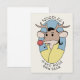 Uma rena de gangster de desenho animado, com nariz vermelho e saliente, fumando um cigarro, e, "Nodles, in Ned Rosa rain gear", texto.