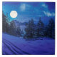 Noite de inverno mágico com lua de cheio e congelado coberto de abeto de neve e de pássaros no inverno. Noite estelar. Floresta de neve à noite ao luar