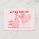 Traga um charme retro divertido para a sua celebração com este cartão cor-de-rosa e vermelho Noite de Encontro & Conselho para a Noiva. Um lado convida os convidados a compartilhar conselhos atenciosos para a noiva, enquanto o verso é perfeito para ideias divertidas e criativas de noite de encontro. Um souvenir elegante e interativo que captura amor, risadas e memórias que a noiva irá guardar.