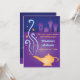 Um convite para abas mágicas para noites árabes divertidas. Ao fundo há uma maravilhosa paisagem urbana árabe e um pano de fundo noturno. Excelente para festa de aniversário ou outros eventos.