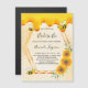 Elegante, divertido, chá de panela de ímã de verão. Um fundo amarelo com um padrão alveolado. Com uma falsa estrutura geométrica de ouro e mel doce pingando. Decorado com girassóis amarelos e laranja e abelhas-desabrochadas felizes. Com o texto: Bride to Bee o nome da noiva na frente, escrito com um moderno estilo escrito à mão. Letras negras. Também pode ser usado como um lembrete de data para os convidados. Traseira: padrão amarelo de mel, design postal. Dica: Se você não quiser que pareça um cartão postal, clique em personalizar, vá para o verso e remova o divisor e o carimbo de posto.