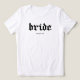 Esta na moda, camisa branca para a noiva apresenta o texto tradicional preto gótico ou antigo estilo inglês.