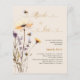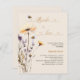 Um fundo cor bege. Decorado com abelhas e pintado flores silvestres em violeta e rosa. Personalize e adicione um nome e detalhes da parte. Sexo neutro. Texto: Noiva a abelha. 1 folha = 1 convite impresso de borda a borda.