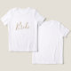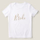 Esta camiseta tri-blend de noiva de festa de despedida de solteira em ouro simples minimalista é perfeita para um chá de panela simples. O design romântico moderno apresenta tipografia clássica em dourado e branco, combinada com uma caligrafia rústica, porém elegante, com estilo de letra à mão vintage. Personalizável em qualquer cor. Mantenha o design simples e elegante, como está, ou personalize-o adicionando seus próprios gráficos e arte.