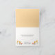 Um lindo cartão de agradecimento de casamento com abóbora, chá de casal ou chá de noiva com duas adoráveis abóboras segurando as mãos. A noiva usa um laço de folha com bolinhas e um caule encaracolado e segura um buquê de margaridas, e o noivo usa um lindo laço de folha verde com bolinhas. Um pássaro marrom senta-se docemente em um cogumelo. Folhas de outono laranja e amarelas e um padrão de bolinhas creme e amarelo completam este cartão de agradecimento de casamento ou chá de casal temático de outono, outubro, novembro e/ou Dia de Ação de Graças. Personalize o texto na faixa e abaixo dela. A metade superior interna tem um padrão de bolinhas amarelo e branco e a parte inferior interna continua o tema de outono com uma borda de bolota, cogumelo, girass