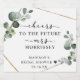 Elegante folhagem de eucalipto com forma geométrica dourada emoldurando script e tipografia clássica para chá de panela da noiva.