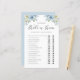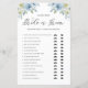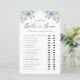 Adivinha quem? Noiva ou noiva? Adicione este chá de fraldas botânico Que Ele Disse, Ela Disse cartão de jogo ao seu evento. Apresenta ilustrações de cor d'água de rosas e peões esbranquiçados e azuis com sotaque verde. Personalize adicionando textos de volta. Esta noiva floral ou um cartão noivo é perfeito para chás de panela de inverno.