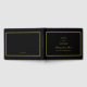 Livro de hóspedes, preto e ouro, elegante, com nomes de noivas e noivos, título de livro, data de casamento e local dentro de uma fina fronteira dourada. A coluna é preta com noiva de ouro e nomes de noivos com título de livro. Negra com noiva dourada e noiva chama um centro inferior, borda dourada. Bloco elegante e texto de script.