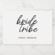 Camiseta feminina simples, moderna e estilosa "Bride Tribe" com fonte script em preto e branco em um estilo moderno. Os nomes podem ser personalizados com os nomes das suas damas de honra. Você pode usá-la para a noiva, damas de honra, meninas de flores ou a mãe da noiva. Os acessórios coordenados para a equipe da noiva funcionam bem para um chá de panela, despedida de solteira, manhã do casamento ou brunch do dia seguinte ao casamento. Faz um presente personalizado atencioso para a comitiva da noiva.