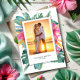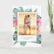Esses cartões de agradecimento de casamento dobrados apresentam uma bela foto da noiva e do noivo emoldurada por flores vibrantes de hibisco rosa e folhas de palmeira monstera exuberantes em detalhes coloridos de aquarela. Projetado com uma estética tropical e floral, esse cartão elegante é perfeito para um casamento de destino, celebração na praia ou evento inspirado em ilha. Use os campos de modelo fáceis para personalizar os nomes do casal e adicionar sua mensagem personalizada para um presente significativo e elegante.