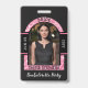 Celebre a noiva com estilo VIP com este divertido e interativo crachá de código QR “Compre uma bebida para a Noiva” - o acessório definitivo para a despedida de solteira. Projetado como um passe de bastidores, este crachá apresenta um layout ousado em preto e rosa com brilho, com uma foto personalizável, nome e código QR escaneável para contribuições de bebidas.