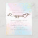 Noivado de Script de Coração Cor Azul-Cor-de-Água Rosa. Um alternativo de 4,5 pol x 5,6 pol com preço inferior. Disponível em um STOCK DE CARTÃO SEMI-GLOSS 110 lb, que é a opção padrão (mais espesso para convites), OU um STOCK de PAPEL THINNER FINISH 80 lb FINISH (ideal para gabinetes). Os envelopes são um extra opcional e são ligeiramente maiores que o tamanho da placa. Uma bela lavagem com aquarela está no fundo com salpicos de ouro no canto superior direito e inferior esquerdo. O noivado é definido em uma escrita elegante com batidas românticas do coração em qualquer extremidade. Personalize facilmente o resto do texto para você.