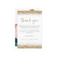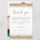 Dourado Noivado De Foto Glitter Obrigado. Um tamanho maior de 5,5" x 8,5" a um preço orçamentário, em um STOCK CARD SEMI GLOSS de 110 lb, excelente de convites, aproximadamente na mesma espessura de um cartão postal, ou um estoque LINEN elegante de 110 lb - para um luxo, ligeiramente mais fino, com um valor de excelente. OBSERVE QUE OS ENVELOPES OPCIONAIS SÃO UM POUCO MAIORES EM TAMANHO A 6,75" x 9" aprox. Este alternativo de tamanho de orçamento também está disponível em outras opções de papel. O papel FELT de 100 lbs é colorido por buff, NÃO branco, então adiciona um toque rústico. O estoque de papel MATTE de 80 lbs é branco brilhante, para impressão nítida, excelente para os menus e programas, enquanto o papel SATIN de 80 lbs é fino e leve, ideal para gabinetes As bordas de brilho de ouro falso estão nas bordas superior e inferior e Obrigado por estar em um script de escrita manual definido na coordenação do ouro. Personalize facilmente o resto do texto. No verso, substitua a imagem de exemplo por uma favorita do seu partido.