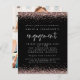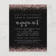 Um valor para o alternativo do ORÇAMENTO em tamanho menor de 4,5 x 5,6" de semirbrilho de 110 lbs, que é de espessura semelhante a um cartão postal (no entanto, não é adequado para uso como cartão postal). POR FAVOR, OBSERVE QUE HÁ UM convite por folha. Rosa Dourado Glitter Borders Foto Noivado Black Invitation. As bordas brilhantes elegantes de rosa dourado estão no topo e no fundo na frente com um fundo preto clássico e carregue sua foto favorita de ambos no verso para substituir a imagem de exemplo mostrada. O noivado é definido em um estilo informal de escrita manual e o resto do texto que você pode personalizar facilmente.