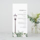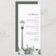 Este menu apresenta a cor d'água magnolia florals e um posto de lâmpadas inspirado na Rua Bourbon. Use esta modelo para editar as fontes, a cor da fonte e a cor do plano de fundo para atender às suas necessidades de eventos. Use este menu para sua recepção de casamento, chá de panela, festa de aposentadoria, etc. Edite todos os textos para atender às suas necessidades.