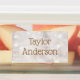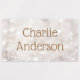 Etiquetas com o seu nome em um fundo leve e focado em forma de suavidade, com um sinal luminoso brilhante.