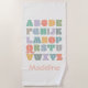 Um design alfabético colorido e retrô que pode ser personalizado para o seu filho ou bebê. Inspirada por tipos retrorreflectores e estilo boho, este design pode ser personalizado com um nome, monograma ou outro texto. Cores neutras em termos de gênero; púrpura, verde, laranja, amarela, lacre, turquesa, cinza, castanho, creme.